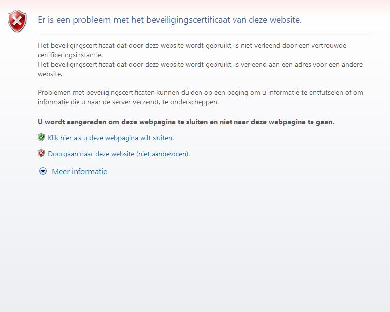 Dit geeft simpel aan dat het certificaat inderdaad niet uitgegeven is door een 'betrouwbare' issuer. Waar is deze pagina te zien? Welk product gaat het hier om?